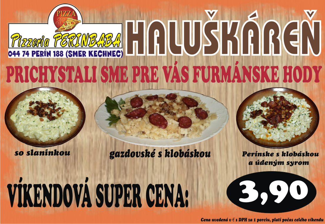Príďte k nám počas celého víkendu od 06.09. - 08.09. a my Vám naservírujeme pravú slovenskú chuť poctivých domácich halušiek s ovčou byndzou